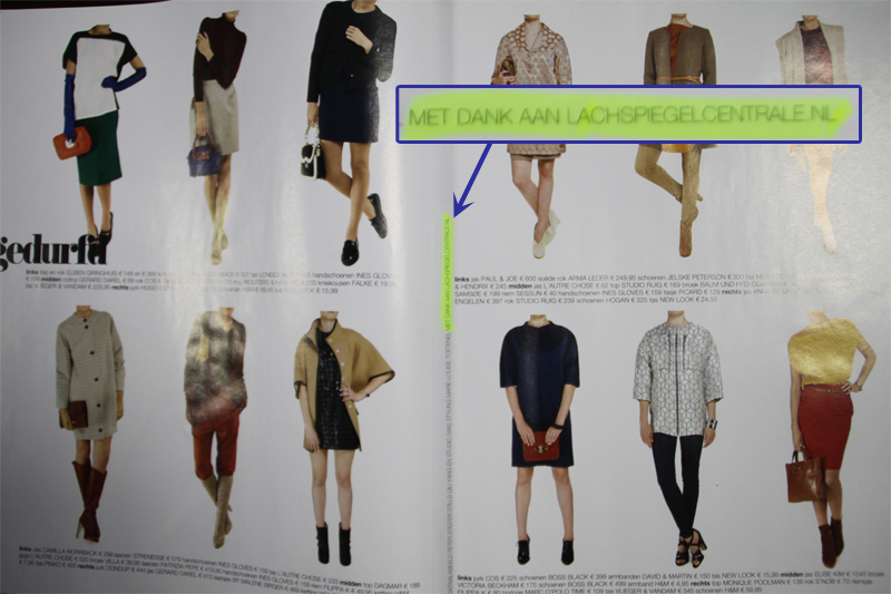 Für das Fashion-Special vom Linda Magazine (August 2011) hat Zerrspiegelzentrale.de ein Set Spiegel zur Verfügung gestellt. Aus unserer Sicht können Sie auf den Fotos nicht erkennen, dass unsere Spiegel verwendet wurden. Die erzielten Effekte könnten auch mit Photoshop erzielt worden sein. Trotzdem sind wir stolz auf unsere Teilnahme an diesem fantastischen Magazin und natürlich als Dankeschön für unsere Zusammenarbeit mit einem Dankeschön. Klicken Sie auf die Fotos oben für eine Vergrößerung. Klicken Sie auf diesen Link, um zum Linda Magazine zu gelangen.
