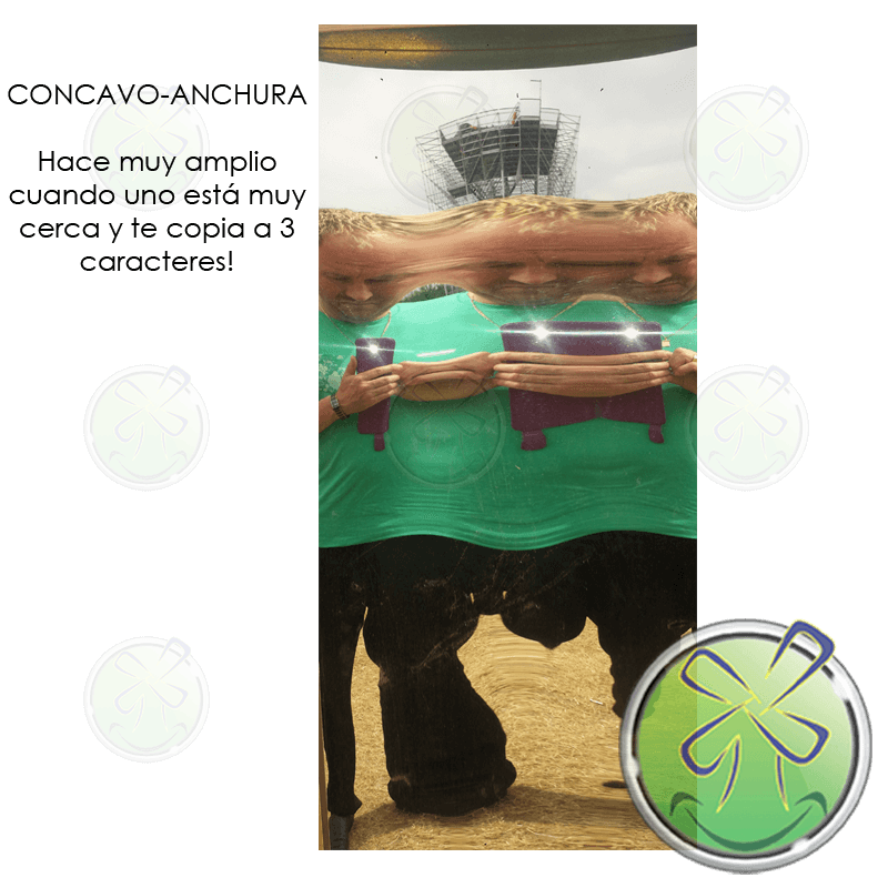 Concavo Longitud, Hace más largo   Convexo Anchura. Hace largo y estrecho (siéntete bien espejo) Consejo: ¡párate frente a él!   Concavo Anchura se hace muy ancho cuando uno está muy cerca de él y te copia a 3 caracteres.