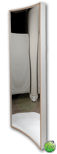 A menudo se nos pide que proporcionemos un espejo de sonrisa sin marco. Sin embargo, la placa del espejo sería plana nuevamente. Porque son precisamente las rebajas en el marco las que mantienen el espejo en la forma correcta, lo que causa las distorsiones. Sin embargo, es posible hacer una sonrisa espejo sin marco. Luego enrollamos una placa de acero inoxidable en la forma deseada. Comprenderá que esto no es barato y, además, la posibilidad de daño es alta. No nos hacemos responsables de esto, ya que la hoja que entregamos está enrollada, por lo que cualquier daño causado por granos de arena o similares tendrá que ser considerado en su análisis de riesgos.